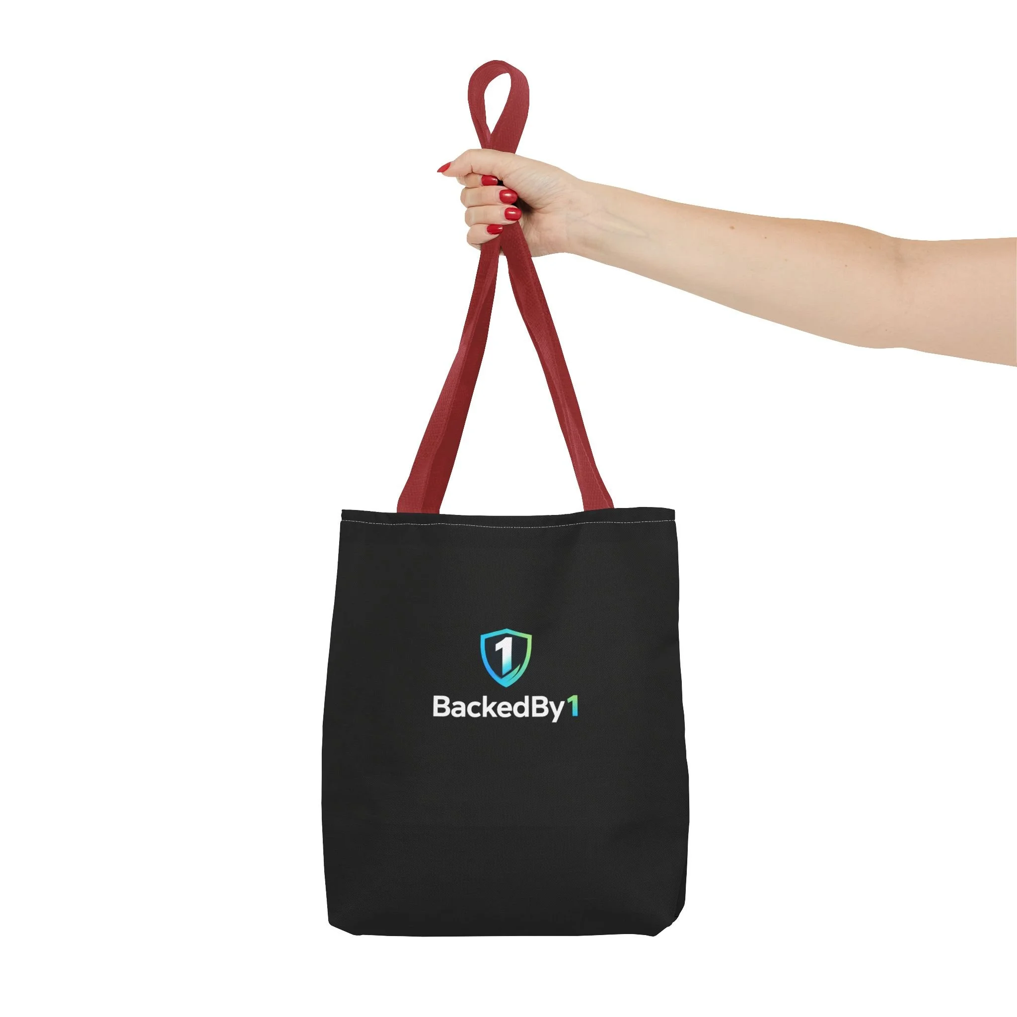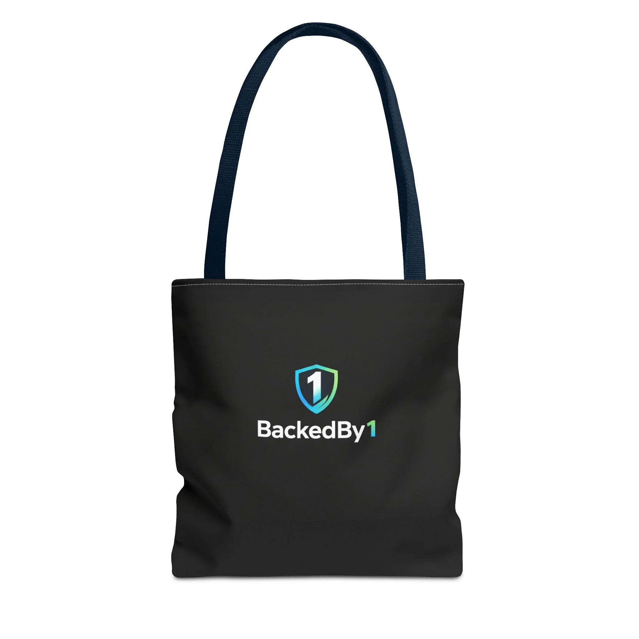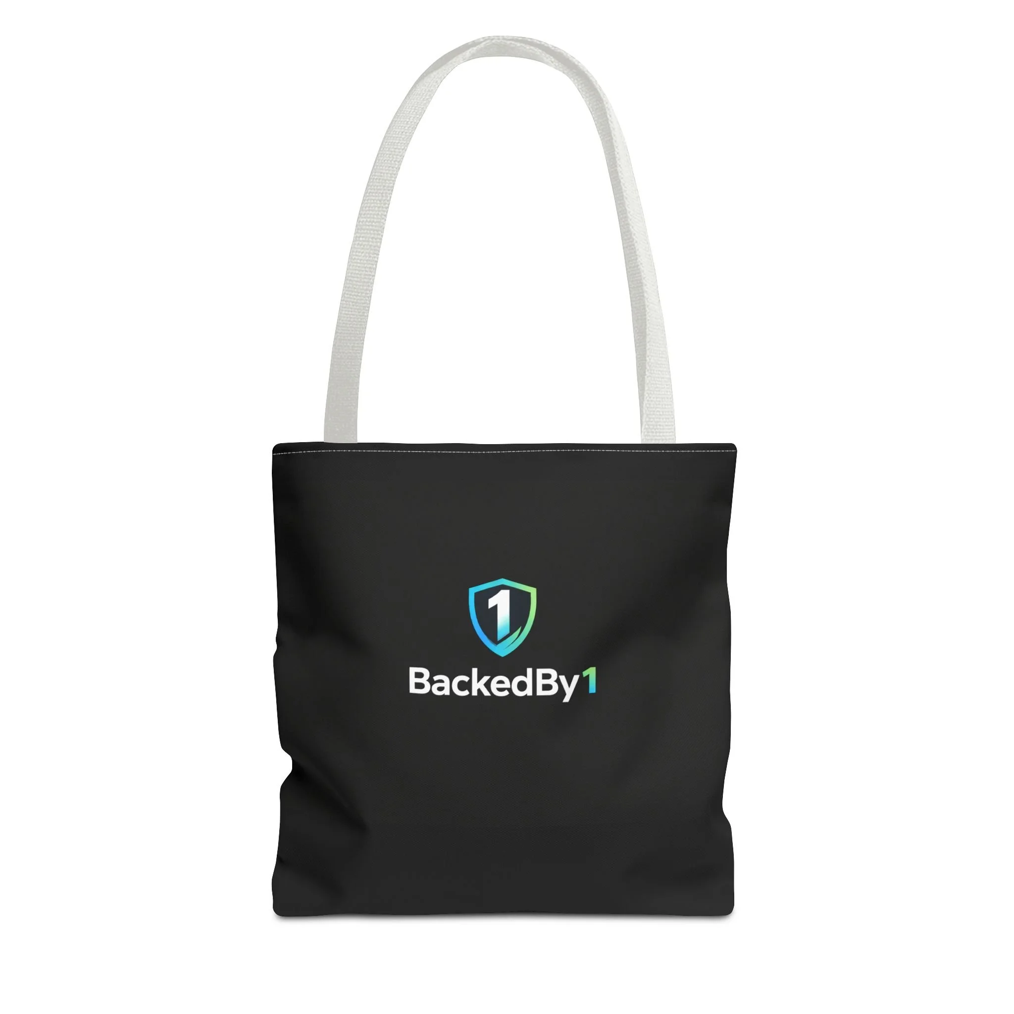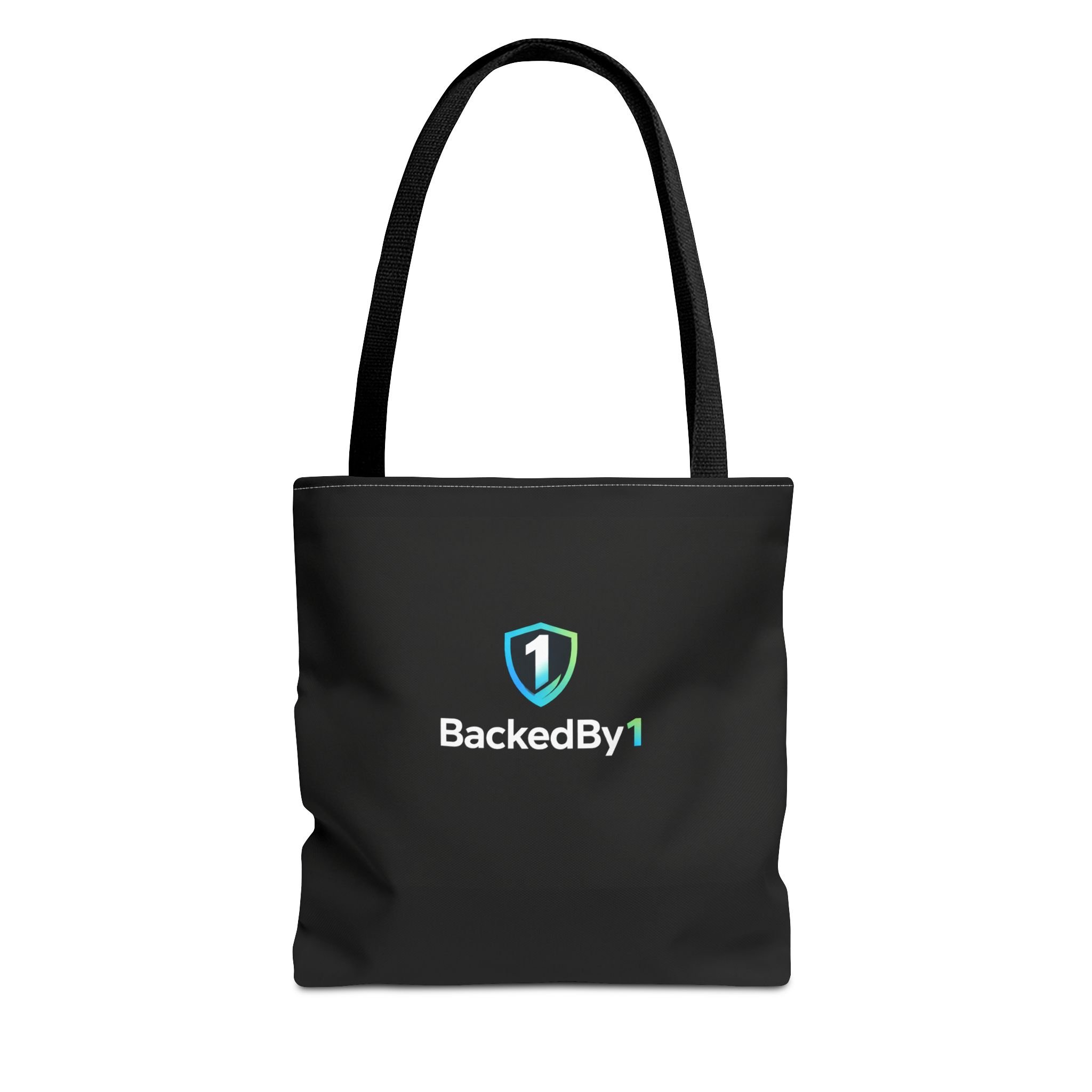 BackedBy1 Shield Logo Tote Bag — Durable Black Everyday Carry